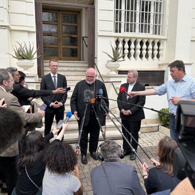- Nach dem Gottesdienst am Samstag standen der Vorsitzende der deutschen Bischofskonferenz, Bischof Georg Bätzing, (l) und Kardinal Reinhard Marx der Presse rede und Antwort. (Foto: Erbacher)